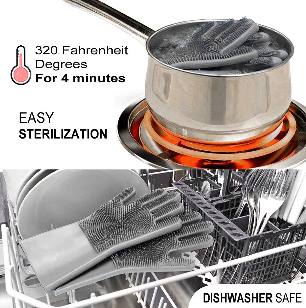 OUTSTANDING CLEANING - Palms and fingers covered with thick silicone bristles which can quickly wash away oil stain and keeping the strong grip, of course, no harm to the kitchen utensils gloves are double-sided and the fingers feature slip-proof grips.